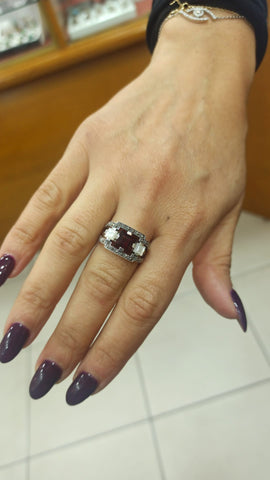 Sterling art deco and retro silver ring with grenate, mother of pearl and marcasites